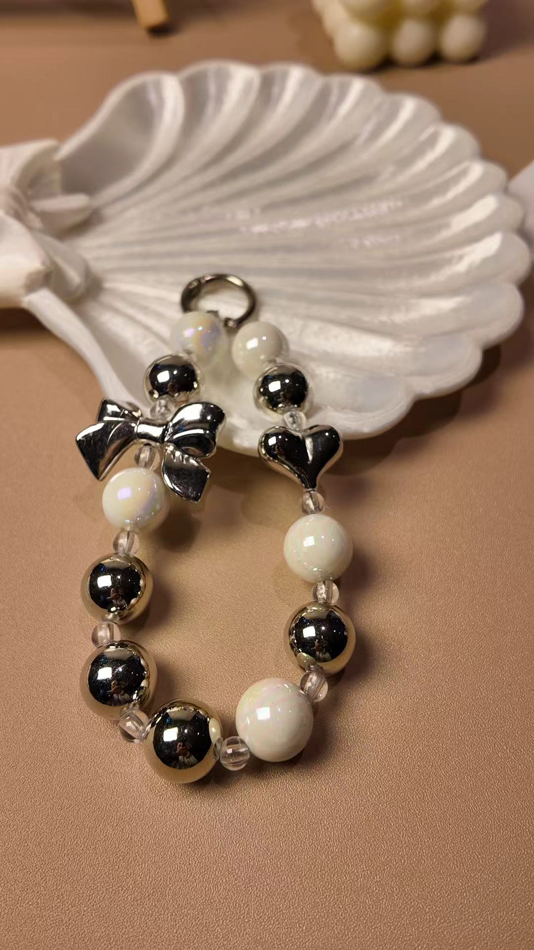 • Exquisite Charms: Centrally positioned is a metal bow pendant, complemented by a delicate metal heart charm, adding a touch of sweet elegance.