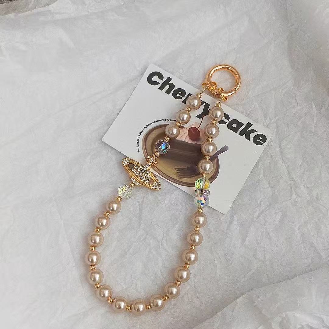 Elevate your phone's style with our elegant pearl phone charm. Featuring a strand of soft, high-luster faux pearls and sparkling crystal beads for a touch of vibrant light. The standout feature? A unique, diamond-accented planet-shaped metal pendant that's both artistic and eye-catching. Complete with a universal, durable metal clasp, it's the perfect wristlet or daily accessory to express your unique charm.